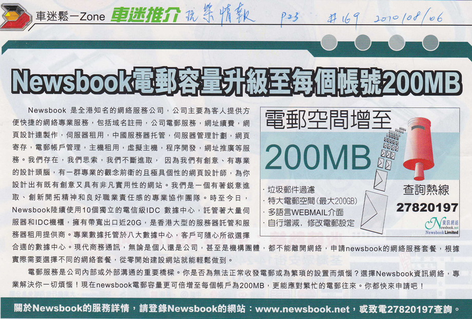 Newsbook電郵帳號容量升級至每個帳號200MB