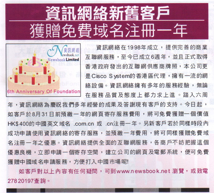 Newsbook's 6th anniversary of Foundation ,special offer to client